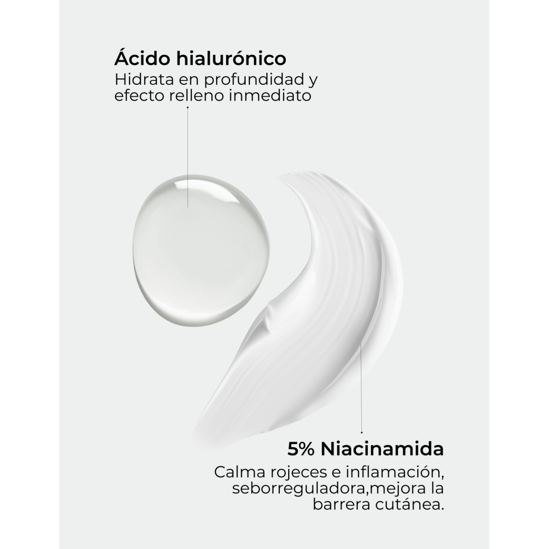 Niacinamid regt die Produktion von Ceramiden an, essentiellen Lipiden, die die Hautbarriere stärken und zu einer gesunden und widerstandsfähigen Haut beitragen. Das transparente Serum wird per Pipette auf neutralem Hintergrund abgegeben.