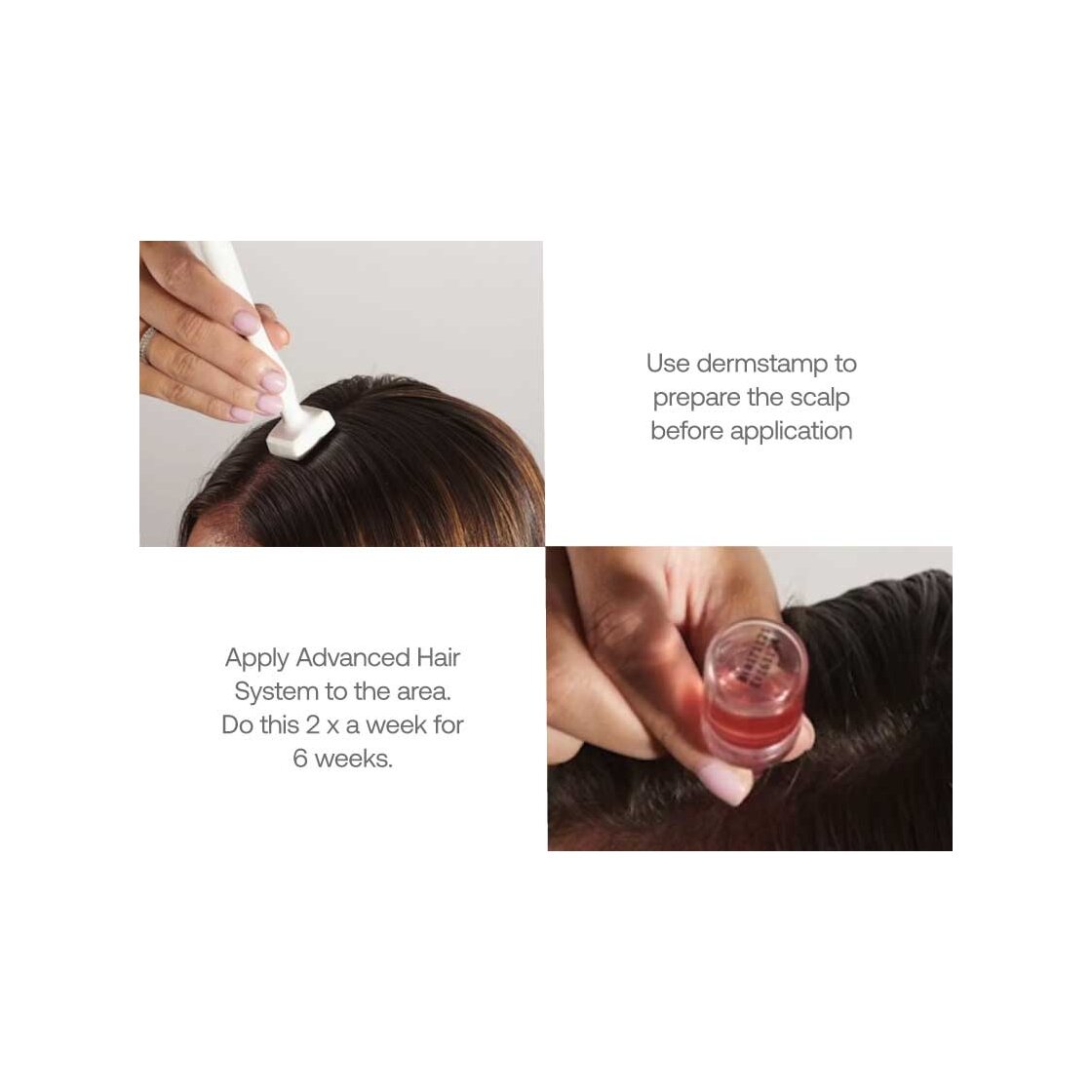 Tragen Sie es 2 x pro Woche mit dem Derma Stamper auf, wobei Sie bei jeder Behandlung eine halbe Ampulle und jede Woche eine Ampulle verwenden. Eine Packung mit 6x5ml Ampullen reicht für 6 Wochen.